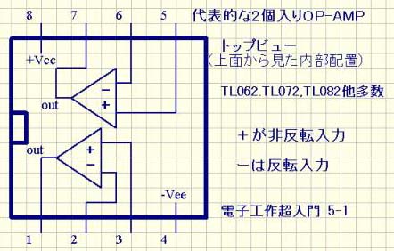TL082は代表的な2個入りOP-AMPです。